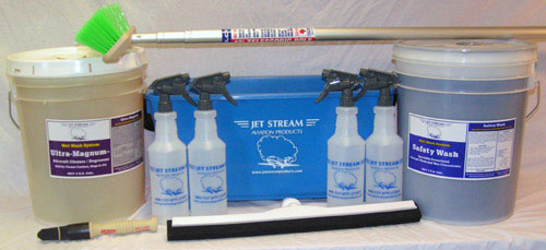 射流湿洗涤套件配有1- 5加仑桶安全洗涤,1- 5加仑桶Ultra-Magnum, 1铝伸缩洗涤杆,1洗刷,1氯丁橡胶飞机刮擦,1齿轮部件刷和4夸脱瓶触发器喷雾器。这个套件包含所有需要完全湿洗任何大小的企业飞机。